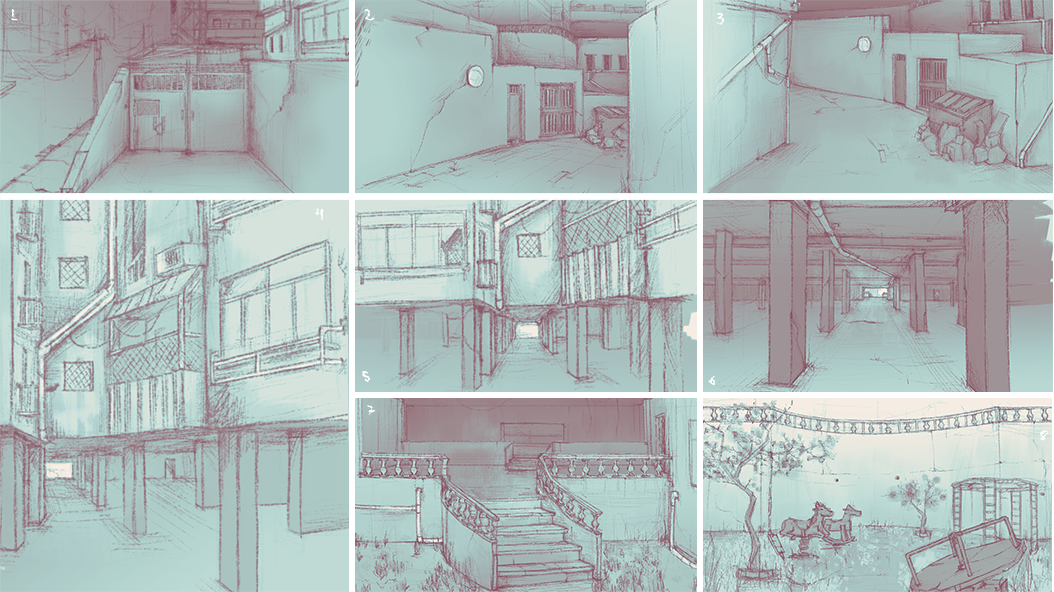| Concept background illustration for friend's short Saudade. Design based on San Carlos's block buildings, a neighborhood in Quito. |